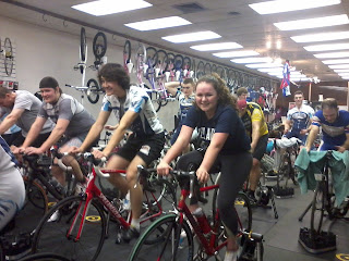 The team at High Road Cycles Thursday night for the Power Advantage Class. We're turning those cranks even on a rainy day.
